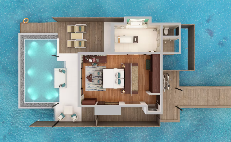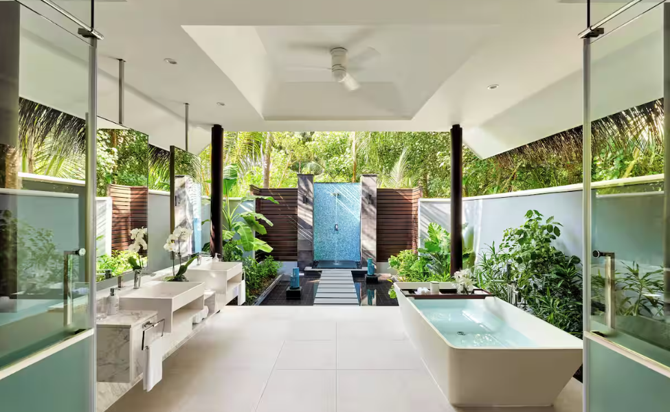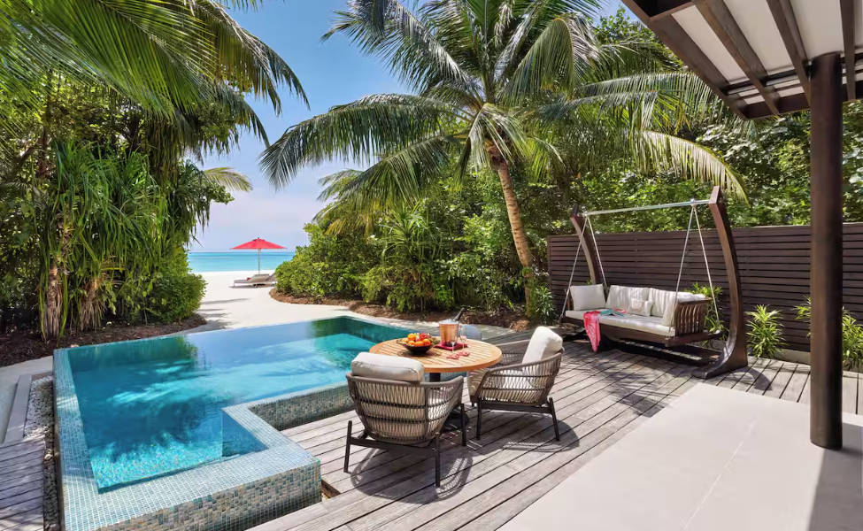 Escape to Niyama’s Deluxe Beach Villa — a chic oceanfront hideaway designed for pure island indulgence. Enjoy spacious interiors, a private sun terrace, direct beach access, an outdoor bathroom with a rain shower, and a serene garden setting that wraps you in total privacy. Perfect for lazy mornings, sun-soaked afternoons, and starlit evenings by the shore.