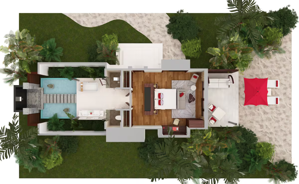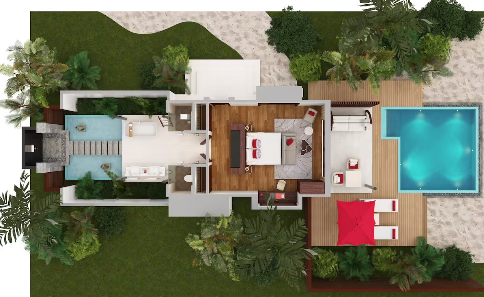 Almost every villa features a private pool, blending elite comfort with tropical elegance.